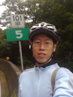 從山腳下一路騎了上來,真的很累人耶!到了約5K(一半?我不知道曾山頂是幾K)的地方休息一下,順便拍張照片紀錄一下。而在騎上來的路上,不時還會回想到去年那次失敗的回憶呢。
