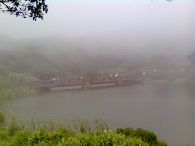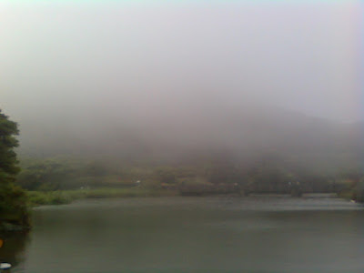 過了剛剛的石碑沒多遠,就會在右手邊看到一座湖。而這邊標高約在800米左右,所以山上的霧就會飄過來喔,這樣看起來讓湖有種矇朧又神祕的FU~~~