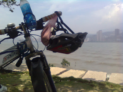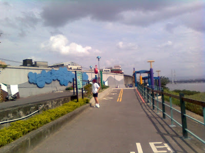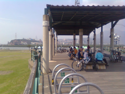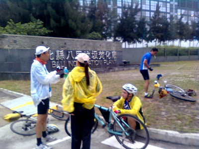 就在回程騎到大約6點前,來到了八里垃圾焚化廠門口。騎在前面的幾個人停下來休息等後面的人跟上來,並且討論一下進了八里市區要怎麼走。